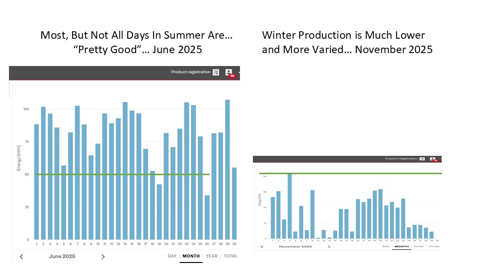 One thing Paul showed the audience that most solar companies don’t talk about openly: generation varies a lot from day to day, and dramatically from season to season.